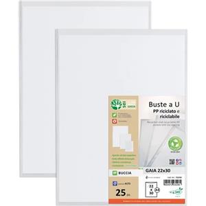 Sei Rota Buste a U Gaia in Polipropilene Riciclato - Trasparenti - 22 x 30 cm - Alto Spessore - Confezione da 25 Pezzi