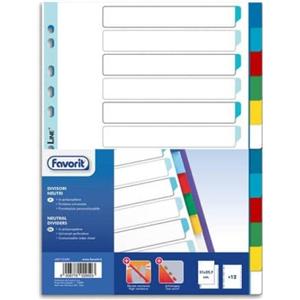 Favorit Divisori Neutri A4 in Polipropilene (PP) da 120 micron con 12 Tacche Colorate e Frontespizio Scrivibile