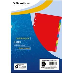 STARLINE Divisori Neutri A4 in Polipropilene con 12 Tacche e Colori Assortiti