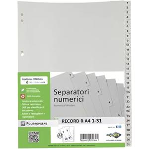 Sei Rota Separatori Numerici 1-31 in Polipropilene A4 - 21 x 29,7 cm - Grigio - 581301