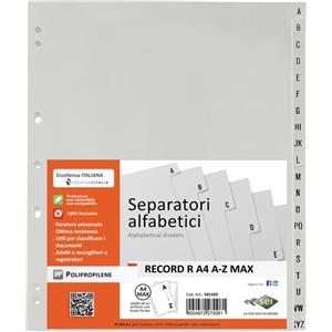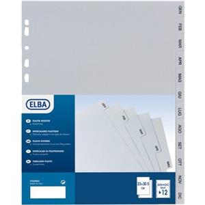 Elba Divisori Alfabetici A-Z in Polipropilene Grigio, 20 Tacche, Formato 22x30 cm