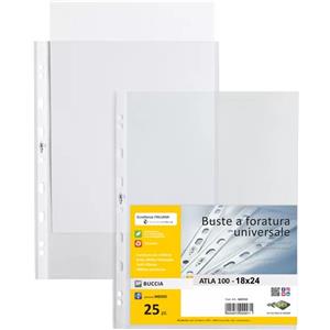 Sei Rota Buste Forate Atla - 18 x 24 cm - Polipropilene Trasparente - Spessore Medio - Confezione da 25 Pezzi