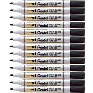 Pentel MW85 Marcatore per Lavagne, 12 Pezzi, Nero, Punta Conica, Inchiostro Luminoso, Facile da Cancellare