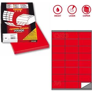 Markin Etichetta Adesiva Permanente C503 - 210x297 mm, 1 Etichetta per Foglio, 100 Fogli, Colore Rosso