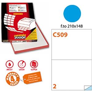 Markin Etichette adesive C/509 blu - 100 fogli A4 - 210x148,5 mm - permanenti - 2 etichette per foglio