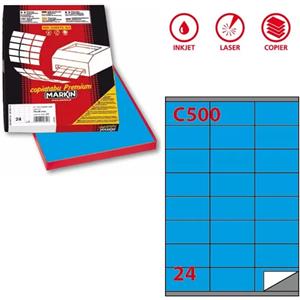 Markin Etichette Adesive Blu C500 - 70x36mm, 24 Etichette per Foglio, 100 Fogli A4, Collante Permanente