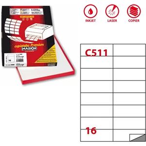 Markin Etichette Adesive C511 - Permanenti 105x37,12 mm - 16 Etichette per Foglio - Scatola da 100 Fogli A4
