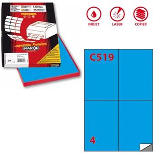Markin Etichette adesive C519 blu - 105x148,5 mm, permanenti, 4 etichette per foglio, scatola da 100 fogli A4