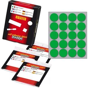 Markin Etichette Adesive Verdi Tonde Ø22mm - 30 Etichette per Foglio - 10 Fogli