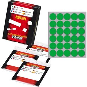 Markin Etichette Adesive Tonde Verde Ø14mm - 63 Etichette per Foglio - 10 Fogli in Carta Permanente
