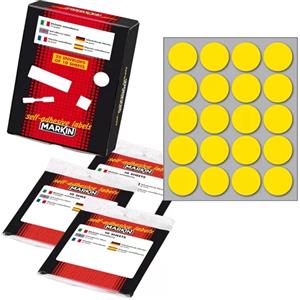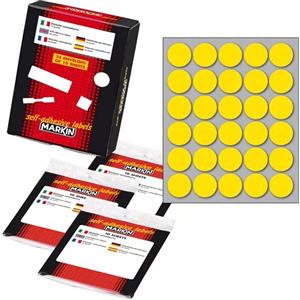 Markin Etichette Adesive Tonde Gialle - Permanenti - Diametro 22 mm - 30 Etichette per Foglio - 10 Fogli