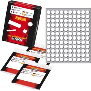 Markin Etichette Adesive Tonde Ø 14 mm - 63 Etichette per Foglio - 10 Fogli per Busta - Bianco - Permanenti