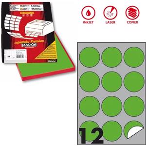 Markin Etichette Adesive R310 - 100 Fogli A4 - Tonde Ø60mm - Verde Fluo - Adesivo Permanente