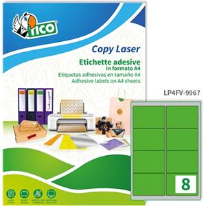 Tico Etichette Adesive Verde Fluo 99,1x67,7mm - 70 Fogli A4, 8 Etichette per Foglio, Adesivo Permanente