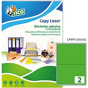 Tico Etichette Verde Fluo 200x142 mm con Angoli Arrotondati - 70 Fogli, Adesivo Permanente, Compatibili con Stampanti Laser e Inkjet
