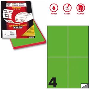 Markin Etichetta adesiva C/519 Verde Fluo - 100 Fogli A4, 105x148,5mm, Collante Permanente, 4 Etichette per Foglio