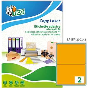 Tico Etichette adesive arancioni fluo 200x142 mm, 2 etichette per foglio, confezione da 70 fogli, adesivo permanente