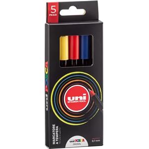 Uni Posca Set Completo di 5 Pennarelli Extra-Fini 0.7mm - Colori Assortiti per Bambini e Artisti, Inchiostro Acrilico Sicuro e Resistente