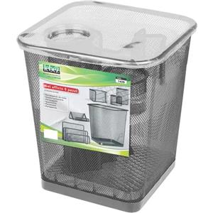 Lebez 1426-S Set da Scrivania in Rete Metallica Argento - 6 Accessori: Cestino, Bicchiere, Portabiglietti, Portaspilli, Sparticarte, Cubo Portamemo