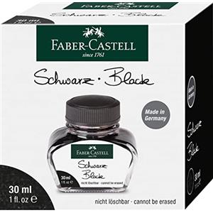Faber-Castell Inchiostro Nero per Stilografica - Boccetta di Vetro da 30 ml, Cancellabile e Compatibile con Convertitori