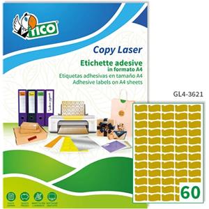 TICO Etichette adesive sagomate GL4 in carta oro satinato - 36 x 21 mm - 60 etichette per foglio - 100 fogli A4