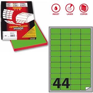 Markin Etichette adesive A/406 permanenti verde fluo 100 fogli A4 47,5x25,5mm (44 et/fg)