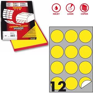 Markin Etichette Adesive R/310 Giallo Fluo - 100 Fogli A4, 12 Etichette Tonde Ø60mm, Permanenti
