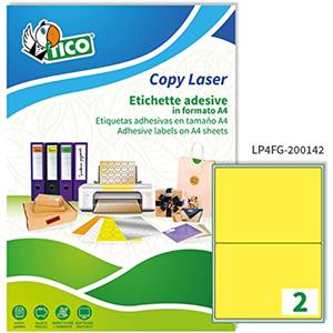 TICO Etichette Adesive Giallo Fluo 200x142 mm - 70 Fogli A4, 2 Etichette per Foglio, Angoli Arrotondati, Adesivo Permanente