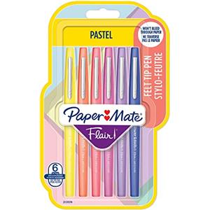 Papermate Pennarello Flair Nylon Assortiti Pastel - Confezione da 6 Pezzi - Punta Fibra 1,1 mm