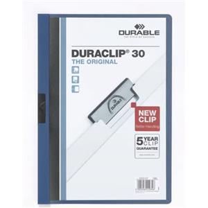 Durable DURACLIP® A4 Cartellina con Clip - Capacità 30 Fogli, Dorso 3 mm, PVC Blu, Copertina Trasparente