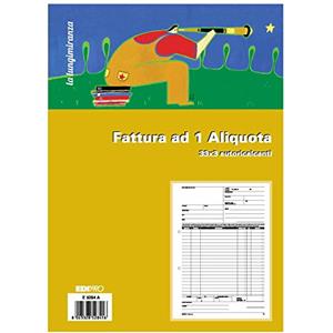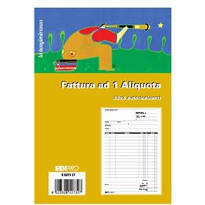 Edipro Blocco Fattura 1 Aliquota - 33 Fogli Autoricalcanti - 3 Copie - Formato 23 x 14,8 cm