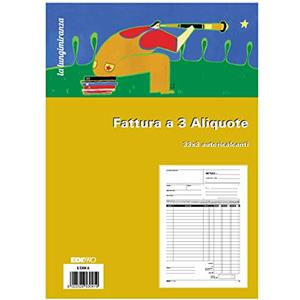 EDIPRO E5304A Blocco Fattura 3 Aliquote - 33 Fogli, 3 Copie, Formato 29,7 x 21 cm, Autoricalcante