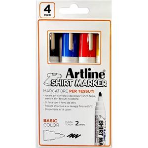 Artline Marcatori per Tessuto - 4 Pezzi Punta Tonda 2.0 mm, Colori Assortiti, Lavabili e Resistenti all'Acqua