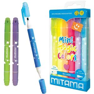 Mitama Evidenziatori Cancellabili Mini - 6 pz con Doppia Punta, Colori Assortiti in Pet Box Ecologico