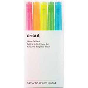Cricut Penna Gel Glitter Neon 0,8 mm - Set da 5 Pezzi in Rosa, Arancione, Giallo, Verde e Blu Fluo