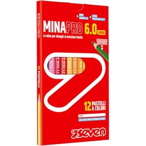 SEVEN Pastelli Colorati Minapro 6.0 - Scatola da 12 Pz con Impugnatura Triangolare e Legno Certificato FSC