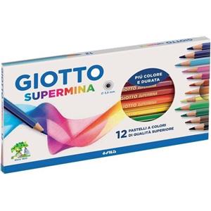 GIOTTO Pastelli Colorati Supermina - Astuccio da 12 Pezzi con Mina da 3,8 mm e Corpo Esagonale