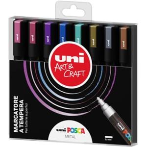 Uni Posca PC5M - Marcatore a Tempera Punta Media 8 Colori Metal Assortiti
