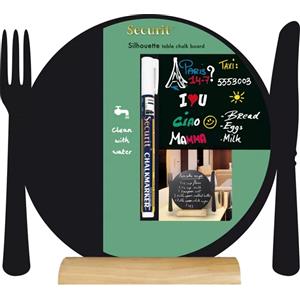 SECURIT Lavagna da Tavolo Silhouette Piatto - Base in Legno Laccato, Dimensioni 24,3x25,3x6cm, Inclusa 1 Pennarello Bianco