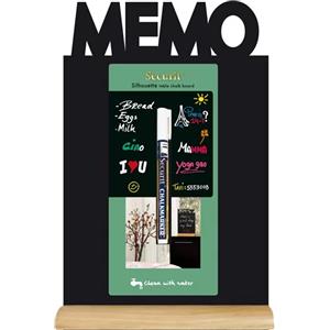 SECURIT Lavagna da Tavolo Silhouette Memo - 34,5 x 21 cm - Nero - Base in Legno Duro Laccato, Scrivibile da Entrambi i Lati, con Marcatori Inclusi