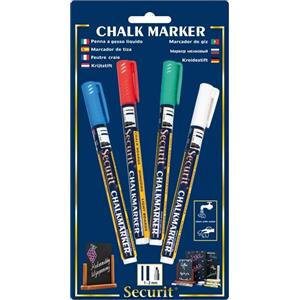 Securit Pennarelli a gesso liquido set da 4 colori assortiti (bianco, verde, rosso, blu) punta fine 1-2 mm