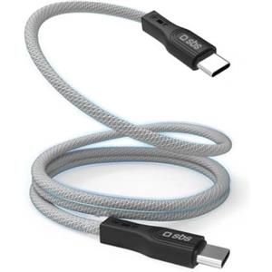 SBS Cavo USB-C - USB-C Magnetico Intrecciato, 1 Metro, Supporta fino a 60W, Cavo Antigroviglio, Ricarica e Trasferimento Dati 480Mbit/s, Grigio