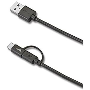 Celly Cavo Dati USB-A a Micro-USB con Adattatore USB-C 1m Nero - 15W, Connettore Reversibile
