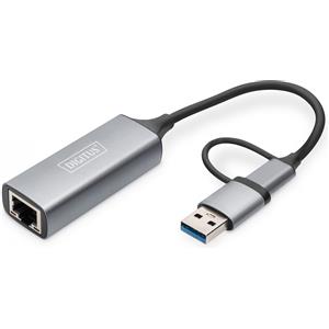 Digitus Adattatore Gigabit Ethernet USB Type-C™ 2.5G, USB-C™ USB A (USB 3.1/3.0), RJ-45, Grigio, Fino a 2,5 Gbps