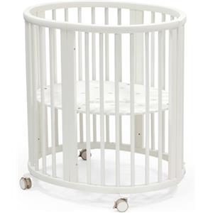 Stokke Sleepi Mini, Bianco - Culla ovale adatta per 0-6 mesi - Base regolabile in altezza, ruote girevoli bloccabili, base materasso traforata per la circolazione dell'aria