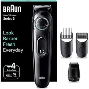 Braun BeardTrimmer 3 BT3421 - Regolabarba Elettrico Nero con Lama Ultra Affilata, 40 Lunghezze, 50 Minuti di Utilizzo Senza Fili