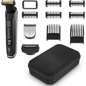 Rowenta Forever Sharp Ultimate TN6204E0 Regolabarba da Uomo - 18 Impostazioni, Bagnato e Secco, Display Incorporato, Lavabile, Nero e Cromo