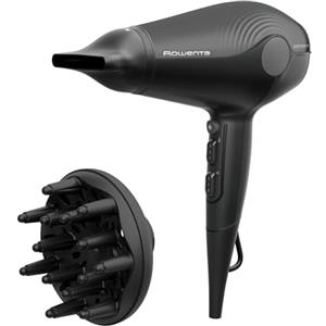 Rowenta Ultra Silence CV6430 Asciugacapelli 1800 W Silenzioso con Tecnologia Ionica, Diffusore e Beccuccio Concentratore, Nero