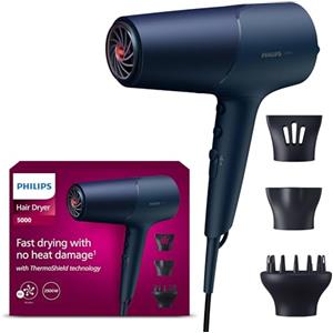 Philips Asciugacapelli Serie 5000 BHD510/20 - 2300W, Tecnologia ThermoShield, Blu Metallizzato, Beccucci da 9 mm e 11 mm, Diffusore