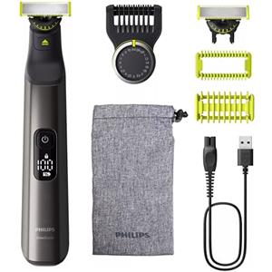 Philips OneBlade Pro 360 Rasoio, Regolabarba e Rifinitore Face & Body con Pettine di Precisione Regolabile 20 Lunghezze QP6552/15, Display LED, Lavabile, Batteria, Cromo